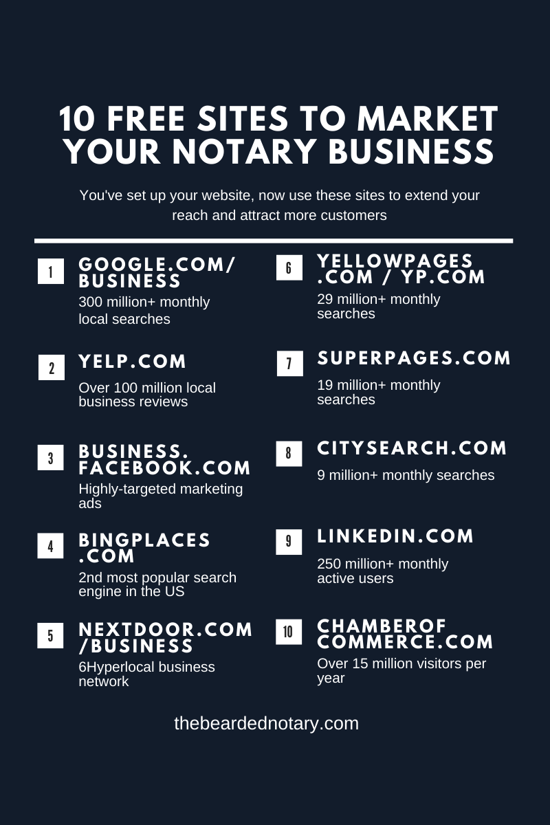 You've invested in your notary commission, gotten your supplies, and maybe even completed loan signing training. Now it's time to get clients. These 10 free business listing sites will put you in front of people actively searching for notary services.